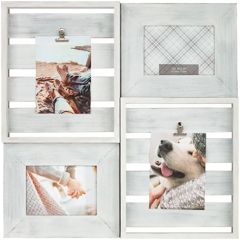 4-Opening Whitewash Dimensional Collage With Two 5×7 Photo Clips