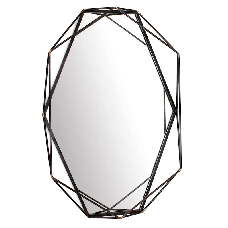 Mirrors just add a touch of glam anywhere they’re placed, and our 25x37in metal oval black geo mirror is no exception. Whether you’re looking at one last glimpse before you leave the house, or just brighten up your living spaces, adding a mirror like this one is a great option for a useful, decorative accent in your home. Reflect on this, our metal oval black geo mirror is a gleaming touch for any living space. And since mirrors have the added bonus of reflecting light, this piece, wall mounted or leaning is sure to make a living room or bedroom feel even larger.