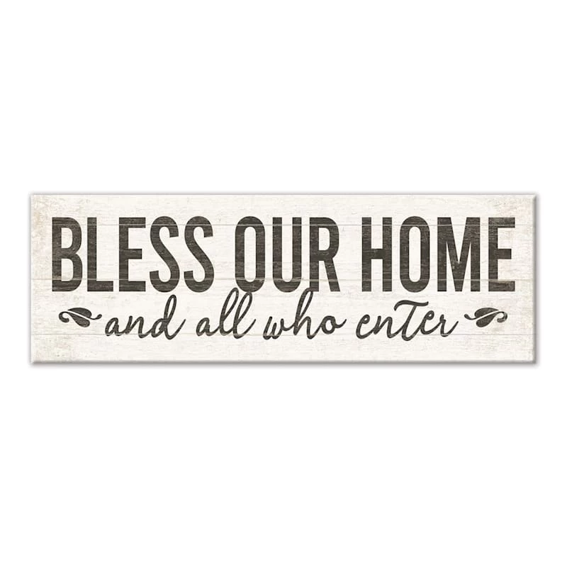 Bless Our Home & All Who Enter Textured Canvas Wall Art, 12×36
