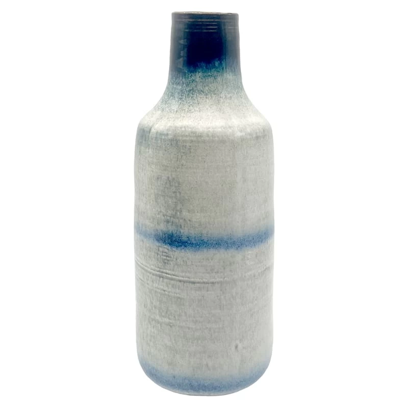 Blue & White Ceramic Glazed Bottle Vase, 11.5"