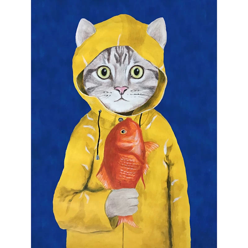 Cat In Fisherman Jacket Canvas Wall Art, 12×16