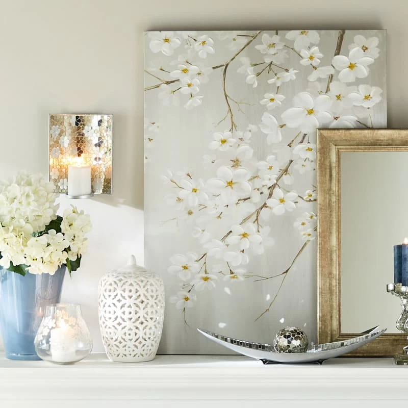 They say beauty is in the eye of the beholder. Art is too. Add a little character to any room in your home with our 40x30in. cherry blossoms canvas wall art. The possibilities are endless with this grey, white, yellow, brown and black wall decor. A scenic blooming branch motif creates visual interest against a visually interesting backdrop. Hang this wall decor to make a bold statement and to add a touch of personality to your home decor.