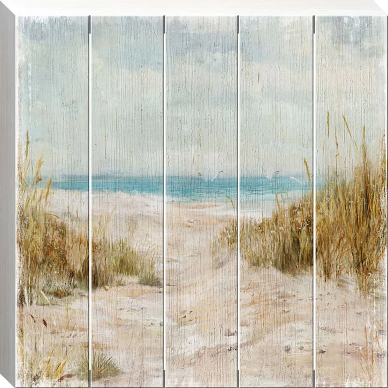 They say beauty is in the eye of the beholder. Art is too. Add a little character to any room in your home with our 20in. Coastal Printed Wood canvas wall art. The possibilities are endless with this sand, ivory, brown, blue, gold and white wall decor. A sandy and grassy coastal path motif creates visual interest against a visually interesting backdrop. Hang this wall decor to make a bold statement and to add a touch of personality to your home decor.