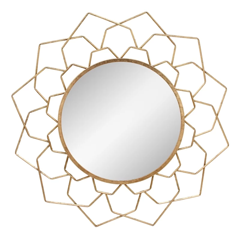 Mirrors just add a touch of glam anywhere they’re placed, and our 34in metal floral cutout wall mirror is no exception. Whether you’re looking at one last glimpse before you leave the house, or just brighten up your living spaces, adding a mirror like this one is a great option for a useful, decorative accent in your home. Reflect on this, our metal floral cutout wall mirror is a gleaming touch for any living space. And since mirrors have the added bonus of reflecting light, this piece, wall mounted or leaning is sure to make a living room or bedroom feel even larger.
