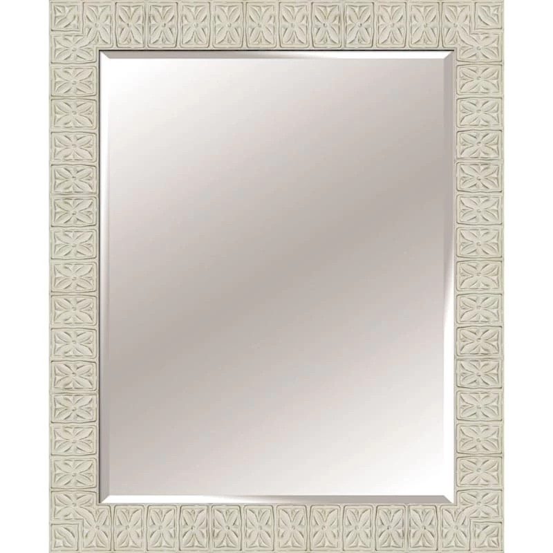 Mirrors just add a touch of glam anywhere they’re placed, and our 28x34in distressed white wooden floral tile framed wall mirror is no exception. Whether you’re looking at one last glimpse before you leave the house, or just brighten up your living spaces, adding a mirror like this one is a great option for a useful, decorative accent in your home. Reflect on this, our distressed white wooden floral tile framed wall mirror is a gleaming touch for any living space. And since mirrors have the added bonus of reflecting light, this piece, wall mounted or leaning is sure to make a living room or bedroom feel even larger.