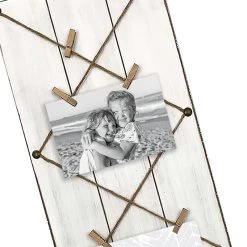 Whitewashed Plank String Collage With Clothespin Photo Clips, 10×25
