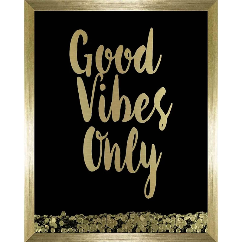 Glass Framed Good Vibes Only Sequin Shaker Box Wall Art, 11×14