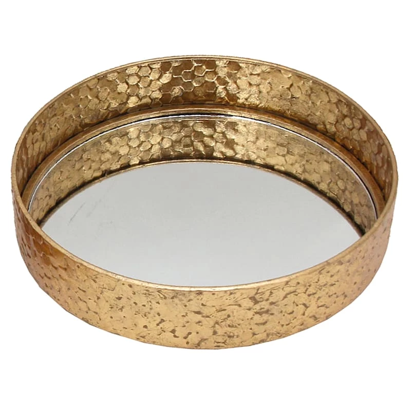 Gold Foiled Round Mirror Decorative Tray, 12"