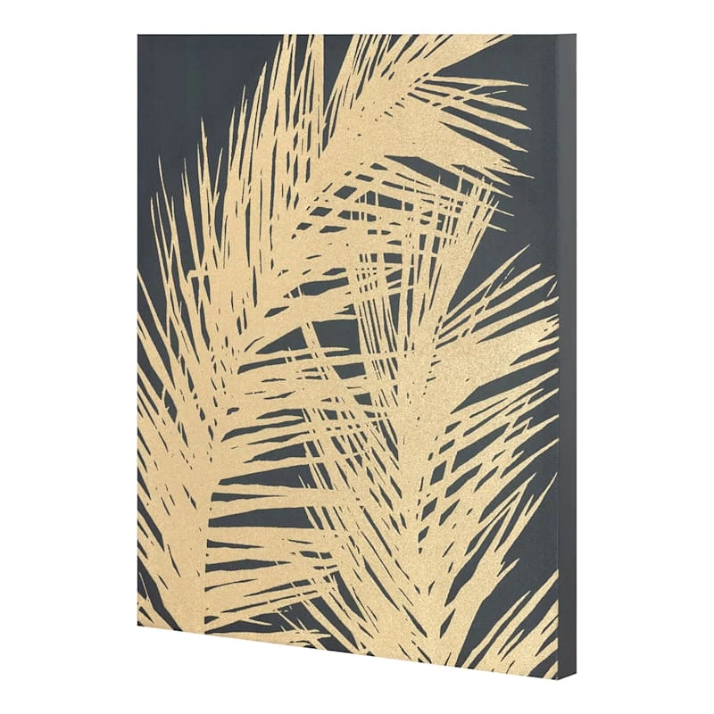 They say beauty is in the eye of the beholder. Art is too. Add a little character to any room in your home with our 16x20in. Golden Leaf canvas wall art. The possibilities are endless with this black and gold wall decor. A dramatic large metallic double palm leaf motif creates visual interest against a visually interesting backdrop. Hang this wall decor to make a bold statement and to add a touch of personality to your home decor.