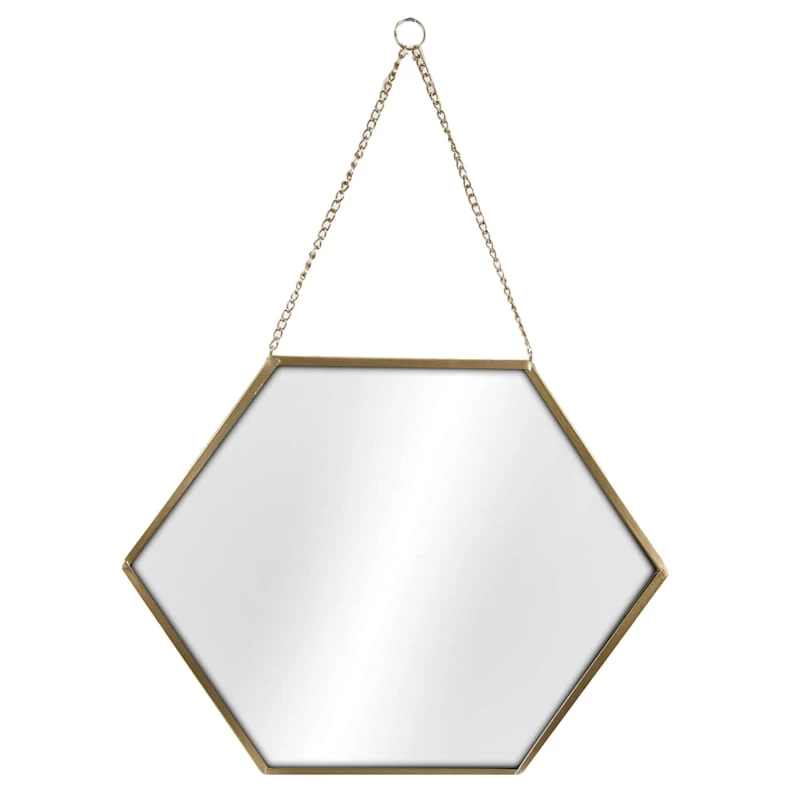 Mirrors just add a touch of glam anywhere they’re placed, and our 16in gold metal hexagon-shaped hanging wall mirror is no exception. Whether you’re looking at one last glimpse before you leave the house, or just brighten up your living spaces, adding a mirror like this one is a great option for a useful, decorative accent in your home. Reflect on this, our gold metal hexagon-shaped hanging wall mirror is a gleaming touch for any living space. And since mirrors have the added bonus of reflecting light, this piece, wall mounted or leaning is sure to make a living room or bedroom feel even larger.