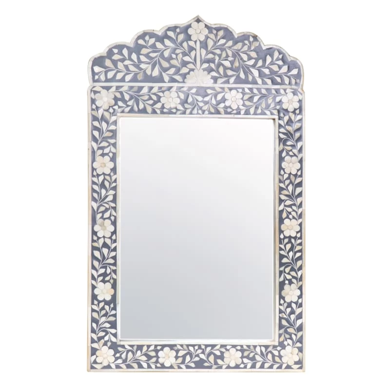 Grey Bone Inlay Arch Wall Mirror, 18×30
