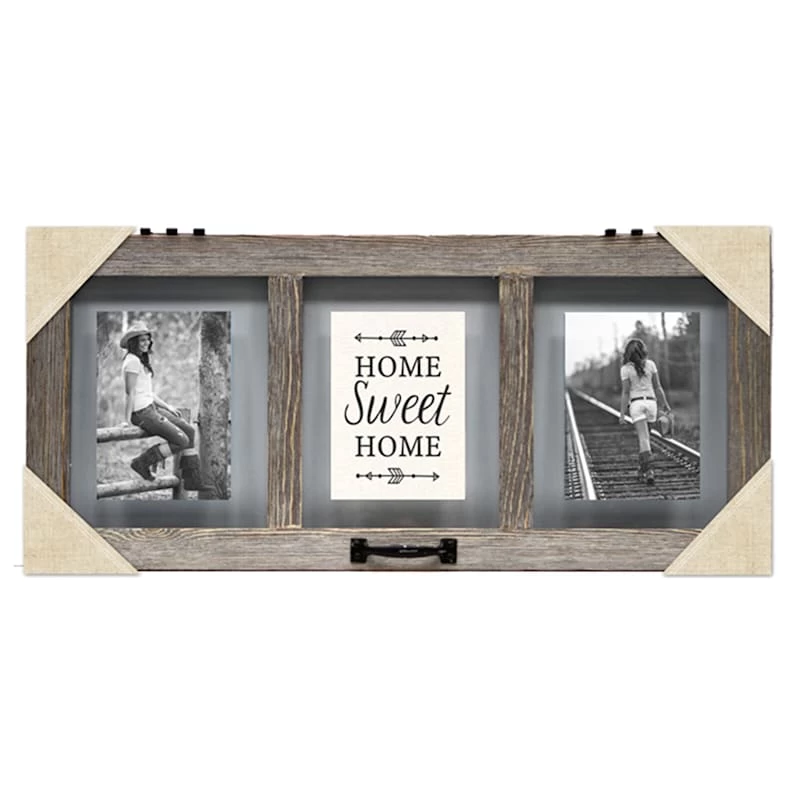 3-Opening Distressed Linear Photo Clip Collage Wall Frame, 10×22