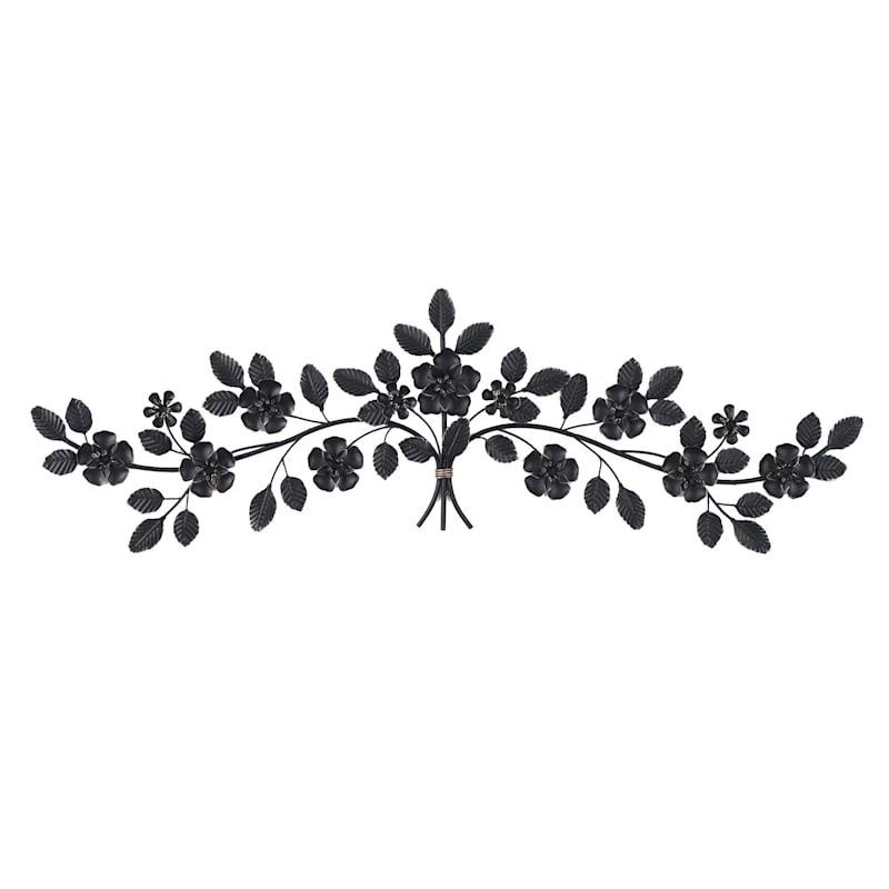 A collection that lets everyone relax in style. Polished finishes and classic hues pair with fun finds. Providence is where elegant settings still feel comfortable and warm – exclusively At Home. Our black metal floral wall art is an ideal way to add a stylish, forever touch to any home. Crafted of metal and cut metal sheets that form the flowers and leaves. This 15x45in. metal art decor is sturdy and designed to last both indoors and outdoors. It makes a perfect gift for housewarmings or to decorate one’s own home and garden.
