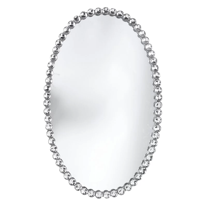 Mirrors just add a touch of glam anywhere they’re placed, and our 14x22in metal oval silver beaded mirror is no exception. Whether you’re looking at one last glimpse before you leave the house, or just brighten up your living spaces, adding a mirror like this one is a great option for a useful, decorative accent in your home. Reflect on this, our metal oval silver beaded mirror is a gleaming touch for any living space. And since mirrors have the added bonus of reflecting light, this piece, wall mounted or leaning is sure to make a living room or bedroom feel even larger.