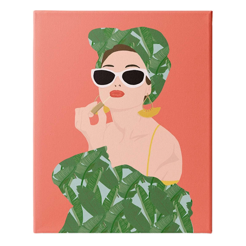 Tropical Lipstick Woman Canvas Wall Art, 18×24