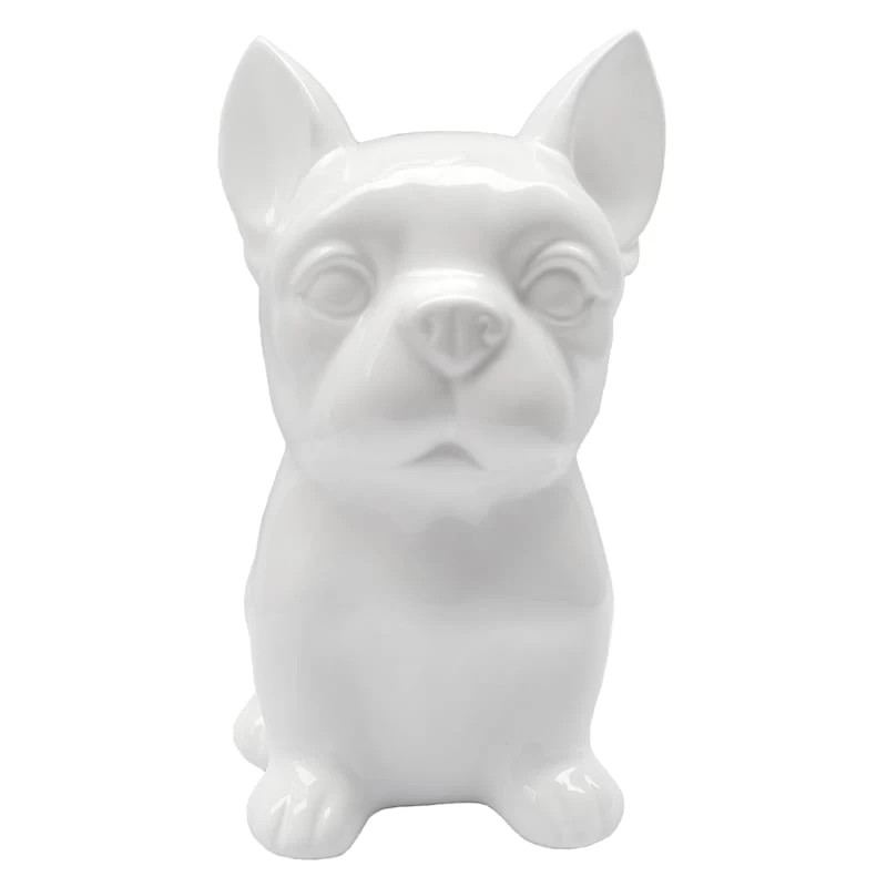 White Ceramic Frenchie Dog Figurine, 8.5"